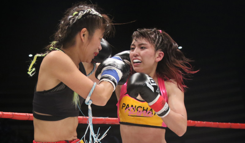 アグレッシブに攻めるぱんちゃん。今回も差をつけRIZIN出場の目標を叶えたいところだ。(20年2月 vs祥子戦)