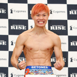 前戦の皇治戦で、強烈なヒザ蹴りを当てる那須川