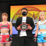 青野ひかる(左)も、アトム級王座決定トーナメントの参戦候補者に