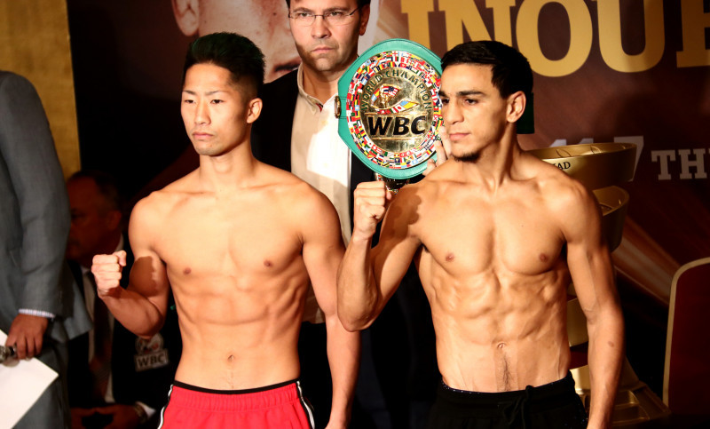 WBC王者のウバーリ(左)。サラブレッドのような筋肉と表されるムキムキぶり。左は井上拓真