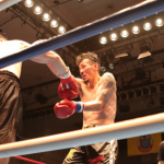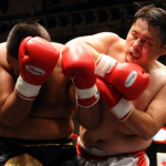 ミドル級の豪腕・田村(左)がヘビー級戦で大畠(右)と対決
