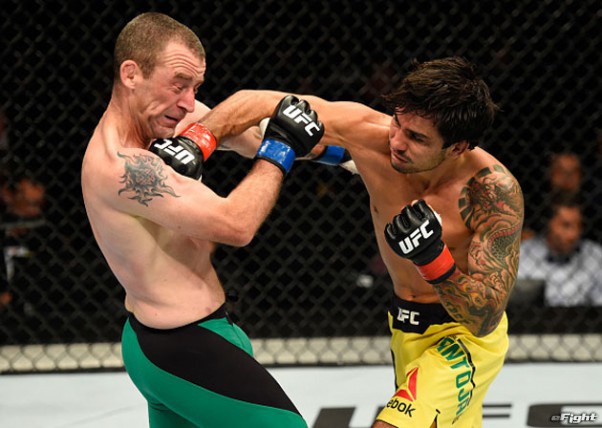 強打で相手の顔を歪ませるパントージャ(右)