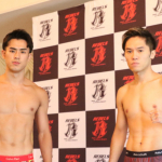 身長差15cmの小笠原裕典(左)とKING強介(右)がともに計量パス
