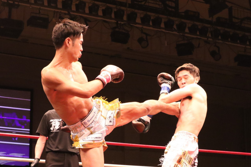 強烈な左ミドルを放つ小笠原