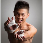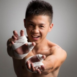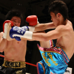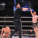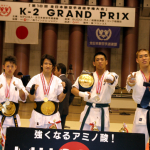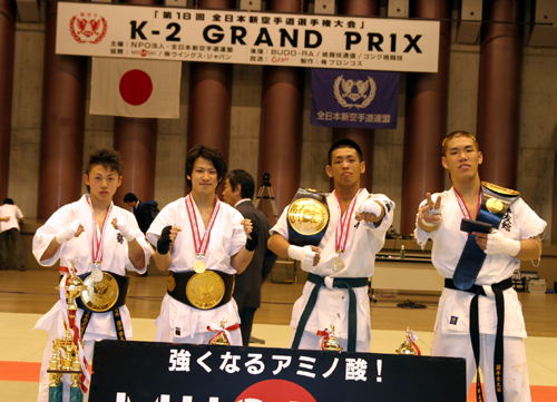 17歳、新空手軽量級で優勝した瀧谷(左)。隣から卜部弘嵩、堤大輔、京太郎