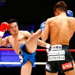 前回はこの右フックで圧巻KO勝利したゴンナパー(左)