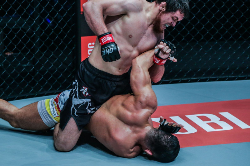 今年2月のベ・ミョンホ戦、強力なパウンドを叩きつけるラマザノフ(左)©️One Championship