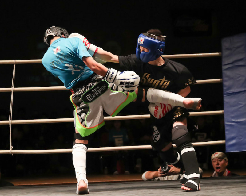 鋭いパンチで那須川龍心(左)を退けた伊藤(右)