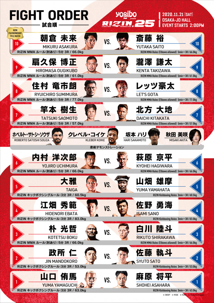 『 RIZIN.25』の10カードとデモンストレーション1試合の全試合順