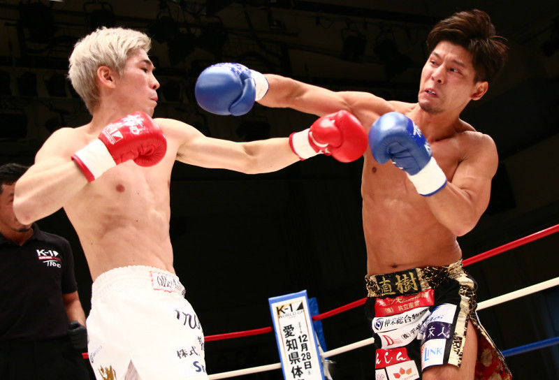 レオナ・ペタスに迫る山本の右ストレート
