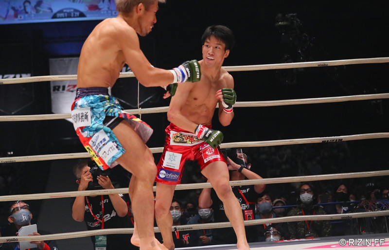 今年9月の前戦、昇侍をKOした朝倉(右)
