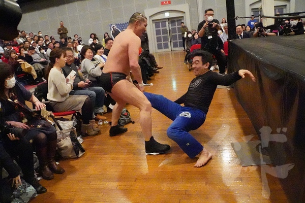 鈴木みのるが柔術家・中井祐樹を掴み場外乱闘にひきこんだ瞬間(2019年)