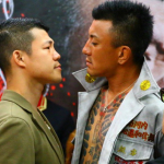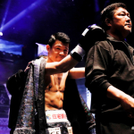 父・史郎氏と亀田家名物の”亀田トレイン”で入場する興毅(2019年6月)