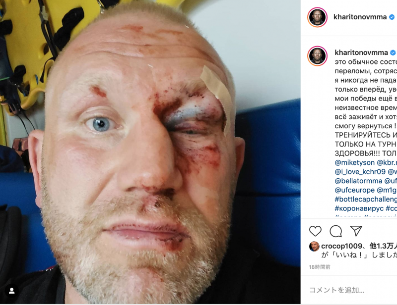 ハリトーノフが公開した顔面負傷写真(ハリトーノフ自身のインスタグラムより)