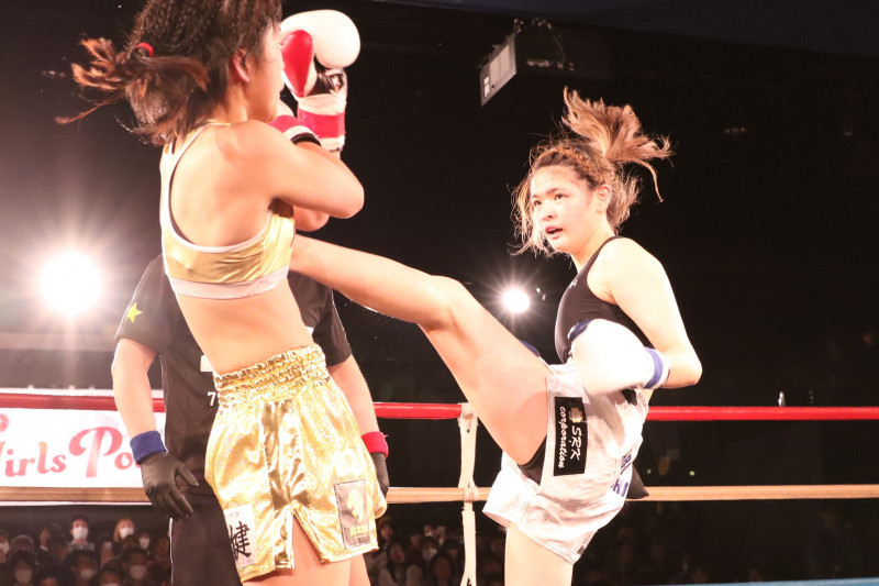 スラリと長い脚で強烈な蹴り技を出すAKARI