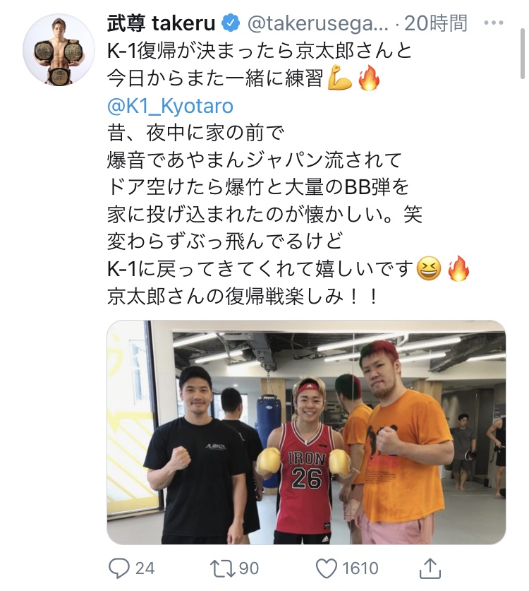 現在京太郎と共に練習しているという武尊@takerusegawaより