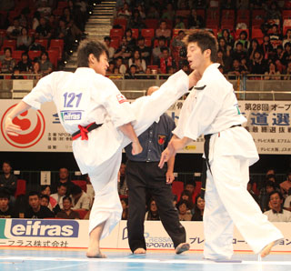 見事な上段回し蹴りで秒殺一本勝ちする加藤