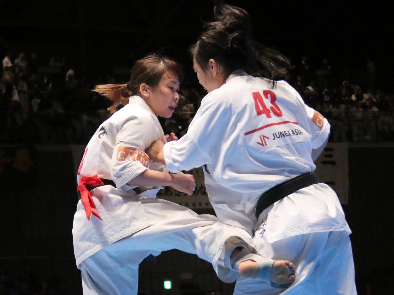 昨年の世界大会ではこの全日本王者の久保田に勝利した軽量級女王の菊川(左)