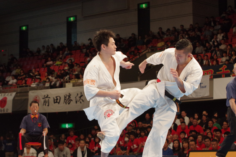 一戦一戦気合を込めたファイトをする島本一二三(右)