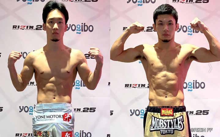 明日のRIZINでフェザー級王座を争う朝倉未来(左)と斎藤裕(右)が共に計量パス