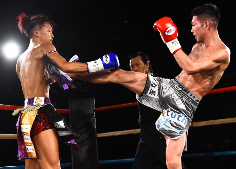 蹴りを放つ大谷(2020年8月)