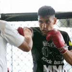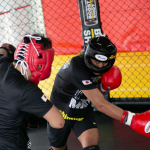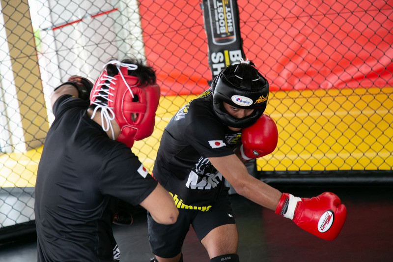 元ボクシング世界王者・薬師寺保栄の指導を受けるアビラルの豪快パンチ(c)K-1