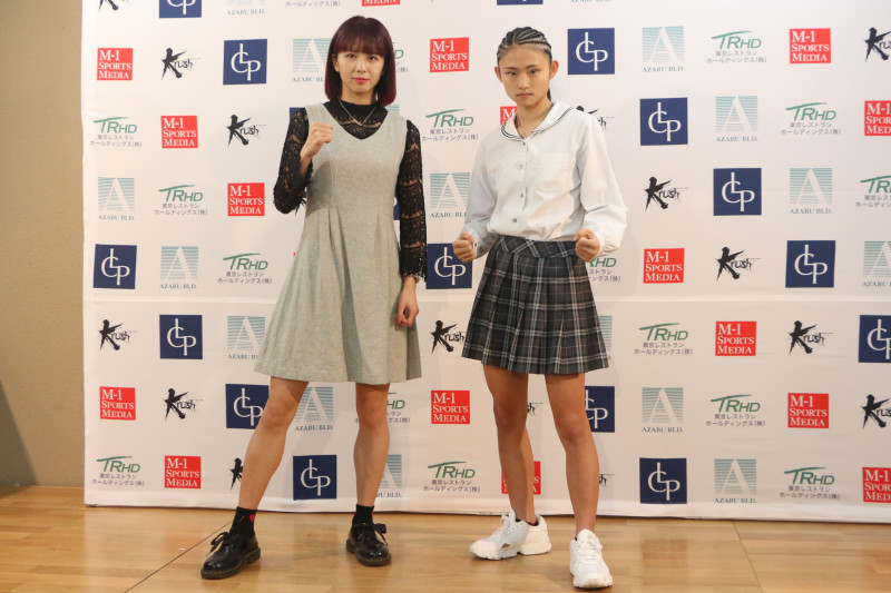「制服は最後かも」会見でのぞんだMOE(右)と菅原(左)