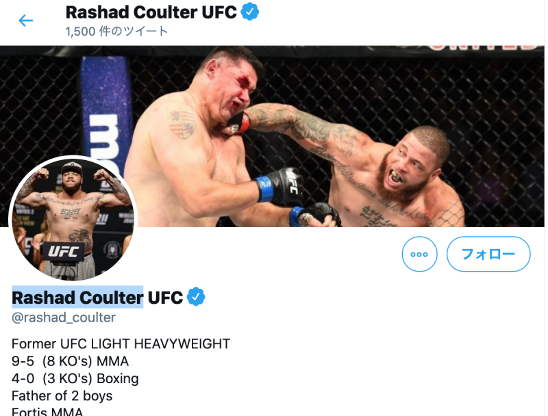 UFCに参戦してきたヘビー級のラシャド(ラシャドのtwitterのトップ画面)