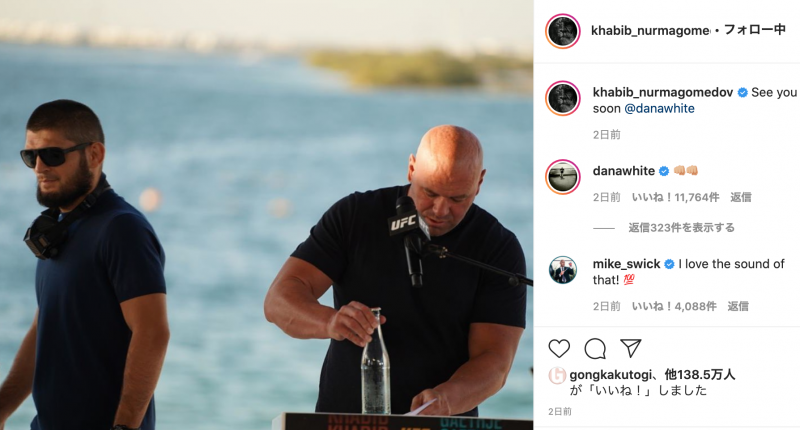 ヌルマゴメドフが投稿した意味深な写真とメッセージ(ヌルマゴメドフのSNSより)