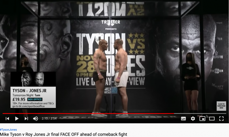 フェイスオフするタイソン(左)とジョーンズ(右)(BT Sports Boxing公式チャンネルより)