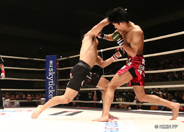 朝倉は堀口から、このクロスカウンターでダウンを奪った(19年8月)