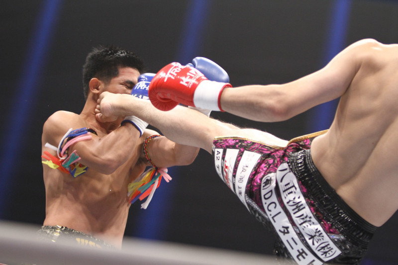 空手仕込みのハイキックを突き刺す和島=今年8月