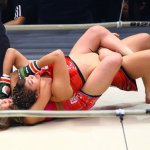 レスリング仕込みの強力なタックルからパウンドを叩き込むのがあいの武器だ
