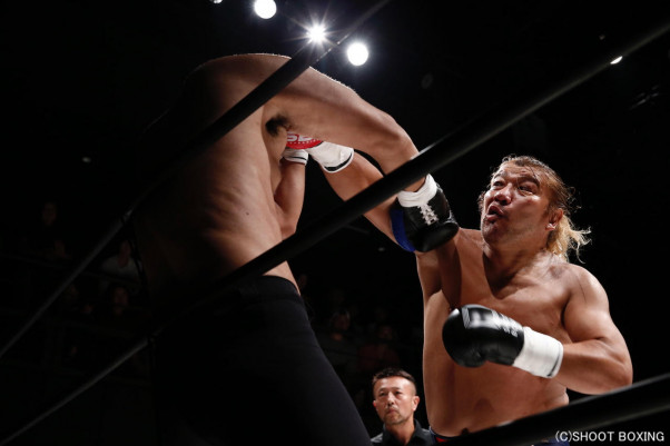 パワフルなファイトスタイルからパンチを打ち込む内田
