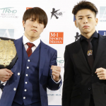 得意のミドルを放つ王者・山際