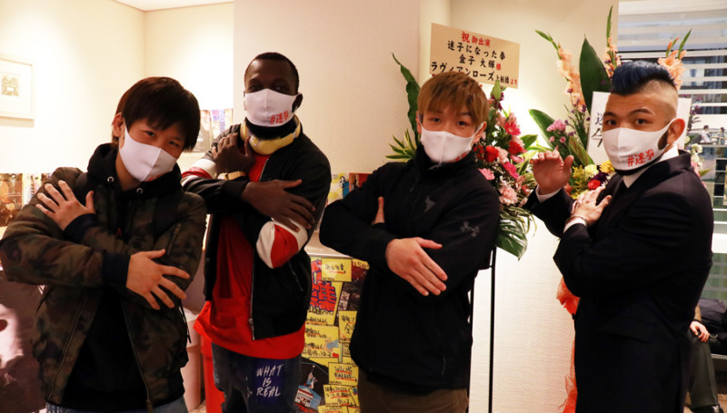 来場したラウェイファイター(左から)浜本、ロクク、金子、渡慶次