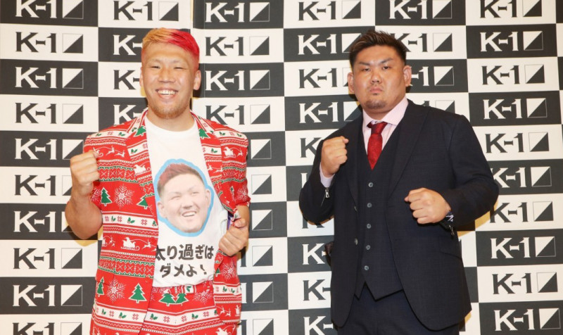 会見で並んだ京太郎(左)と実方(右)、身長は共に183cmで100kgオーバーのヘビー級対決となる。(C)K-1