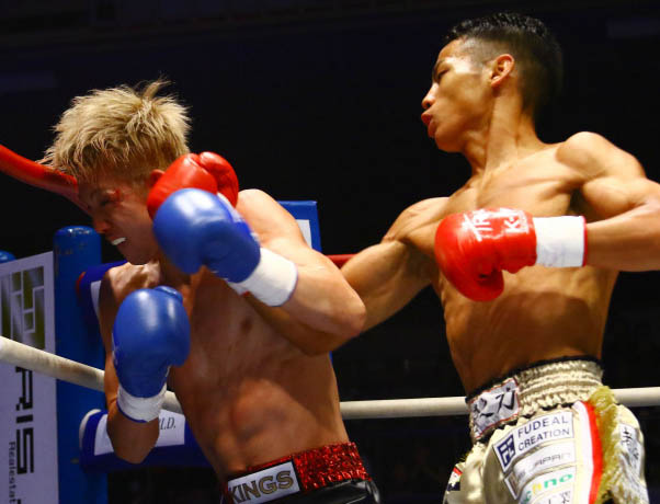 右のロングアッパーをヒットさせKOする武居、パンチテクニックは超一流だ