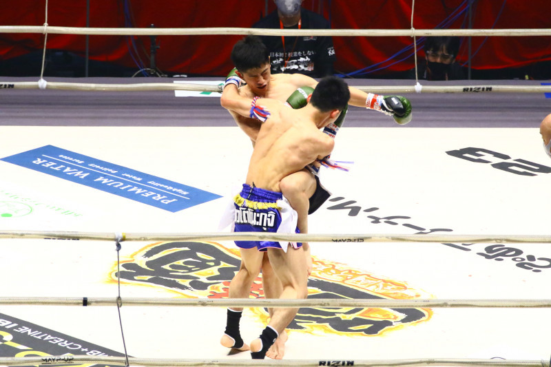 8月にRIZIN初参戦した名高、鋭いヒザ蹴りを相手のボディに食い込ませる