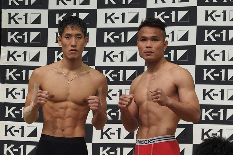 林(左)vsゴンナパー(右)が計量パス、明日のメインを飾る