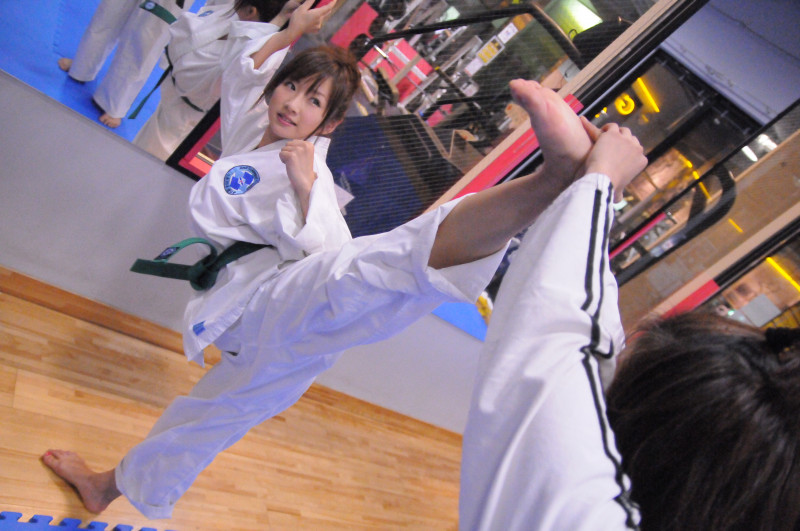 ゆずポンキックを練習する愛川ゆず季、2009年 JTAテコンドー道場にて