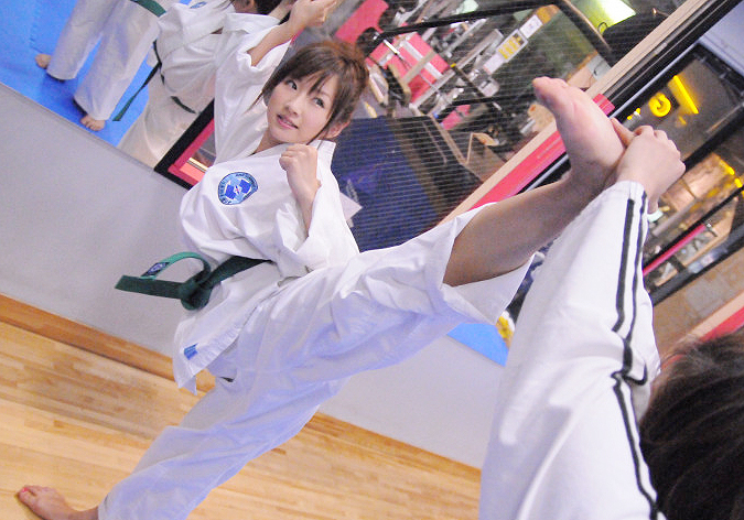ゆずポンキックを練習する愛川ゆず季、2009年 JTAテコンドー道場にて