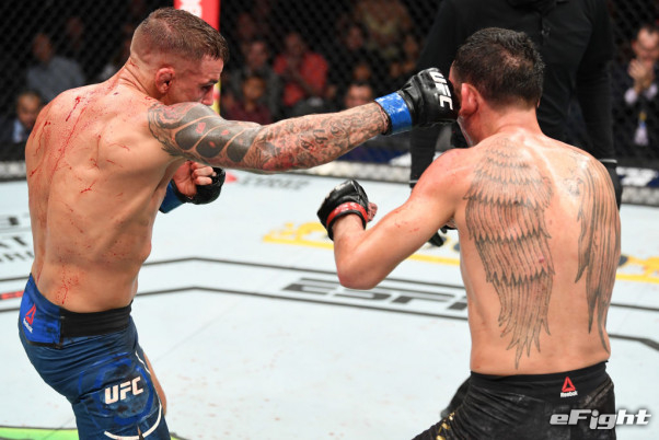 ホロウェイの側頭部に強烈フックをぶち込むポイエー=昨年4月(By courtesy of Zuffa LLC / Getty Images)