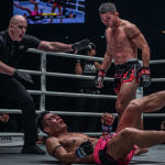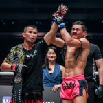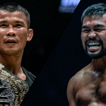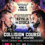 王者ノンオー(左)が強敵ロドレック(右)を相手に防衛戦を行う