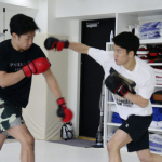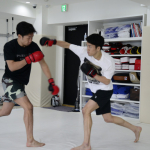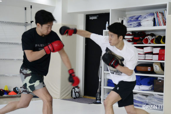兄・未来(左)と公開マススパー。完璧なタイミングで右のストレートを放つ海(右)