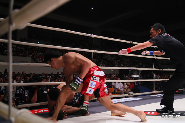 倒れ込んだ堀口最後の追撃を行う海