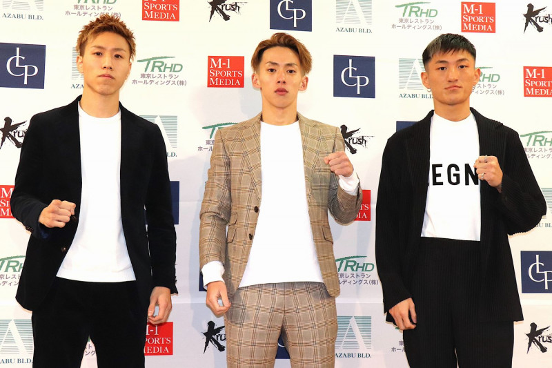 (左から)会見で並ぶ萩原、橋本、黒田(C)K-1