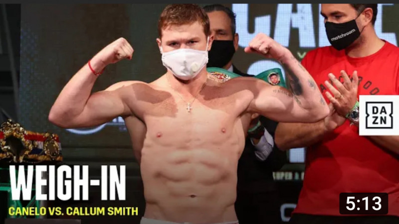 カネロがキレキレの肉体、計量でマッスルポーズを決める
