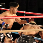 西谷(右)は高塩と壮絶な打撃戦を見せたがローブローでリズムを崩した