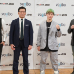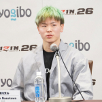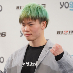 グリーンに染めた髪で会見に登場した那須川